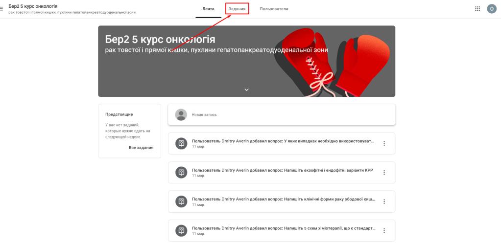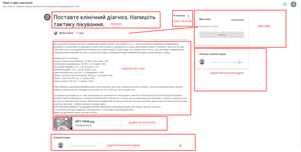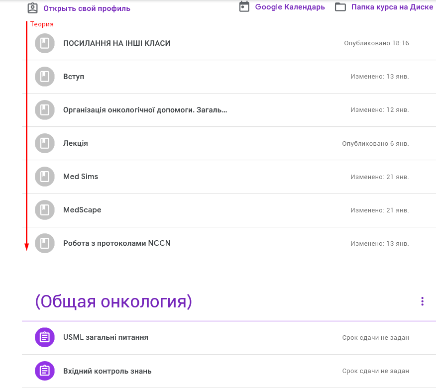 Гугл клас був створений щоб полегшити та покращити вивчення онкології, але під час карантину його будуть використовувати всі студенти. Деякі завдання можуть здаватися вам складними, але їх не багато. У середньому вам потрібно до 4-х годин, щоб прочитати всю додану інформацію та відповісти на завдання. До кожного домашнього завдання є дедлайн.